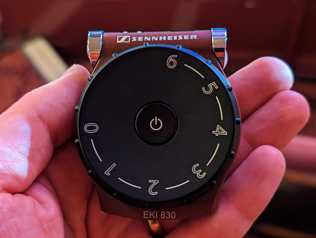 During the show, I found the audio through the receiver to be clear but very quiet. Some things were easier for me to hear through the receiver, but some were easier to hear “live” without my headphones. Because of this kind of mixed usefulness and the especially bad state of my hearing at the time, I didn’t mention anything to the staff at the interval.